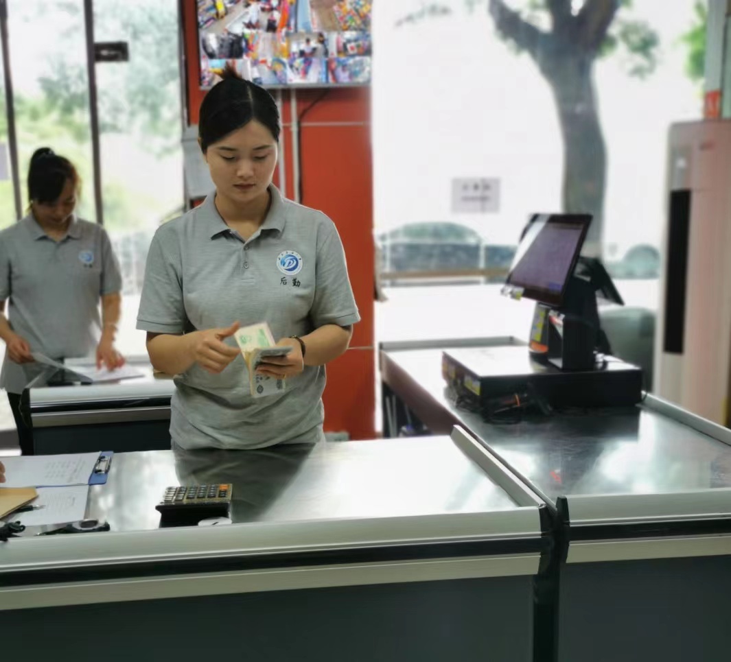 参加本次比赛的选手一共有9位,每位选手依次进行“收银服务标兵、点钞高手、专业找茬”三个比赛项目。收银服务标兵项目主要考察选手们的收银操作熟练度、服务礼仪规范、收银速度等收银必备知识和作业流程;点钞高手项目则考察选手的点钞速度、准确度;专业找茬比赛项目主要考察选手的商品陈列规范掌握程度,选手要在1分钟内找出陈列不符合规范的商品并纠正。
