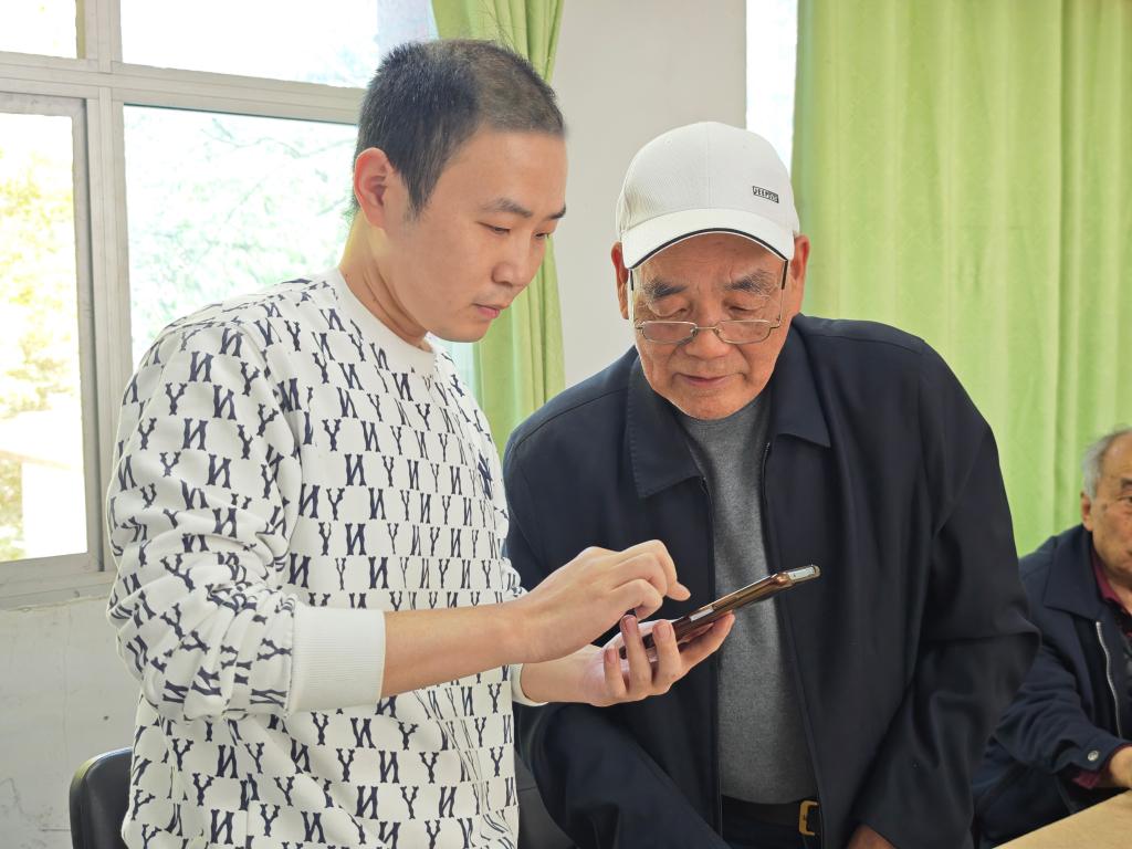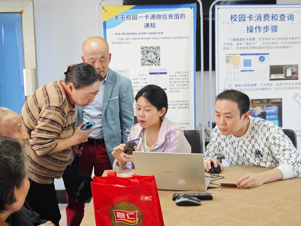 现代教育技术中心职工为离退休教职工介绍校园一卡通线上充值方法