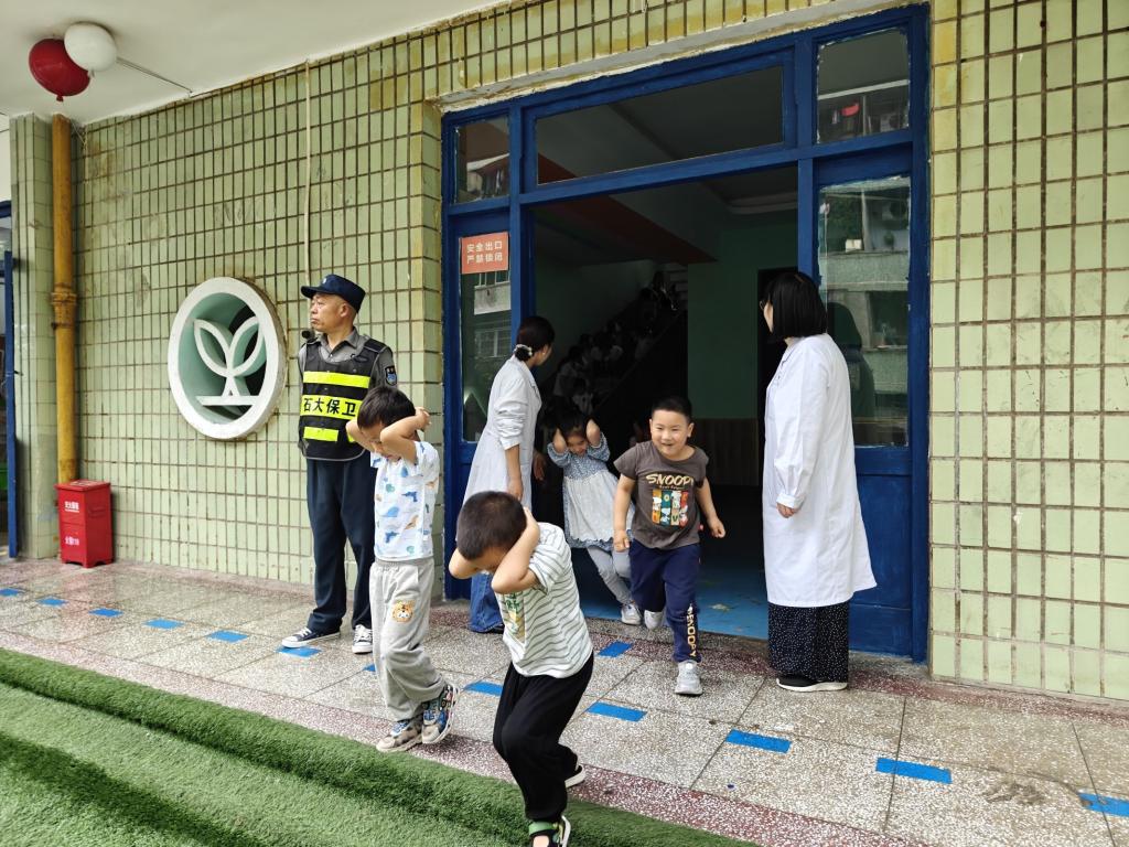 5月10日上午,随着一声警报,各班级幼儿立刻停止活动,以最快的速度钻到各自教室的桌子底下、墙角三角区域抱头下蹲,警报结束后,在老师们的指挥下,小朋友们紧急有序地按指定路线迅速撤离危险地带到空旷场地,到达安全地点后老师们立即进行人数清单并报告。