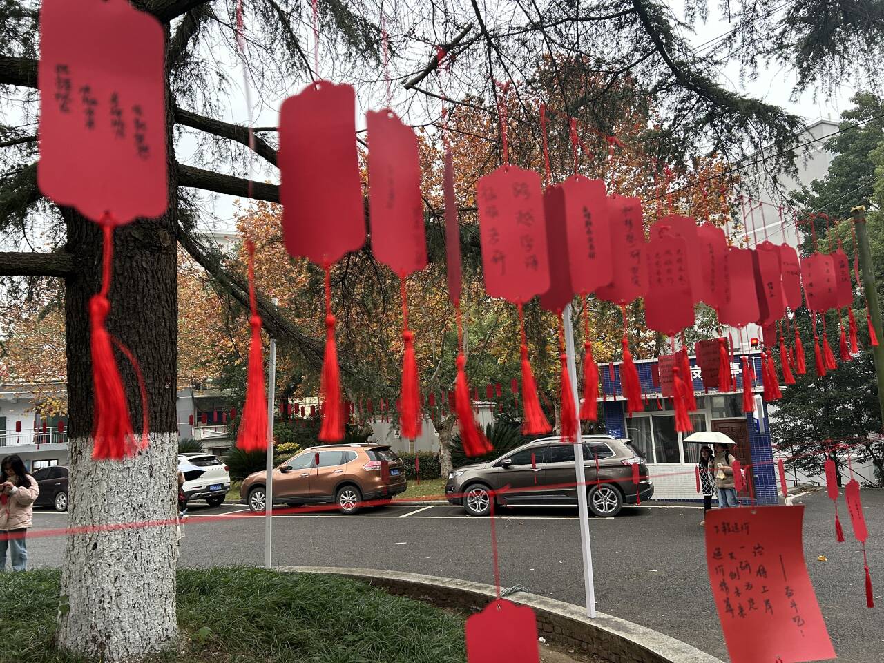 饱含同学们深切祝愿的祝福卡片分别挂在学生电梯公寓大厅和女生公寓外大树上,宛如冬日里的暖阳,给备考的学生带来了“研”途的温暖。考研学子纷纷表示,这份暖暖祝福和鼓励,让他们在备战路上倍感亲切和温暖,为考研取得好成绩增加信心和决心。