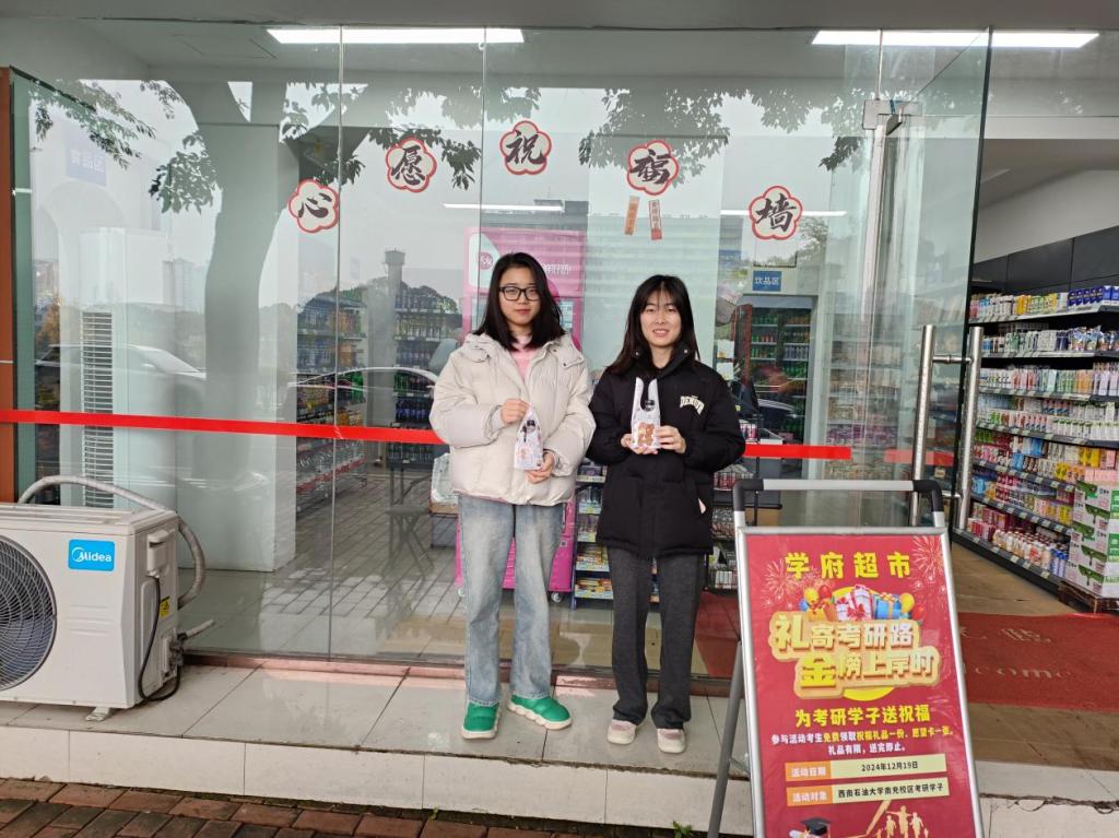 为帮助考研同学增强信心,鼓励同学们以积极轻松的心态迎接考试,12月19日,学府超市开展“礼寄考研路 金榜上岸时”送祝福活动。