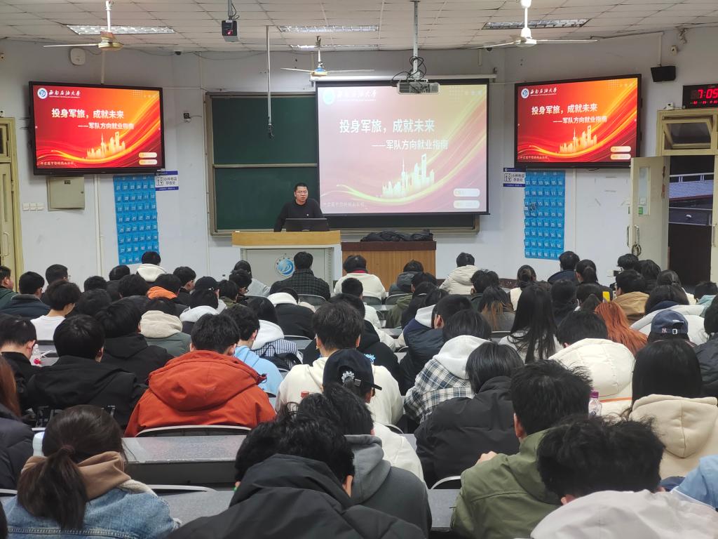 为帮助广大毕业生了解军队发展方向,投身国防建设事业,促进毕业生高质量就业,3月20日,学生发展部(团委)在第四教学楼4517教室举办“投身军旅,成就未来——军队方向就业指南讲座”。学校招生就业处副处长余泽龙担任主讲老师,270余名学生参加本次讲座。