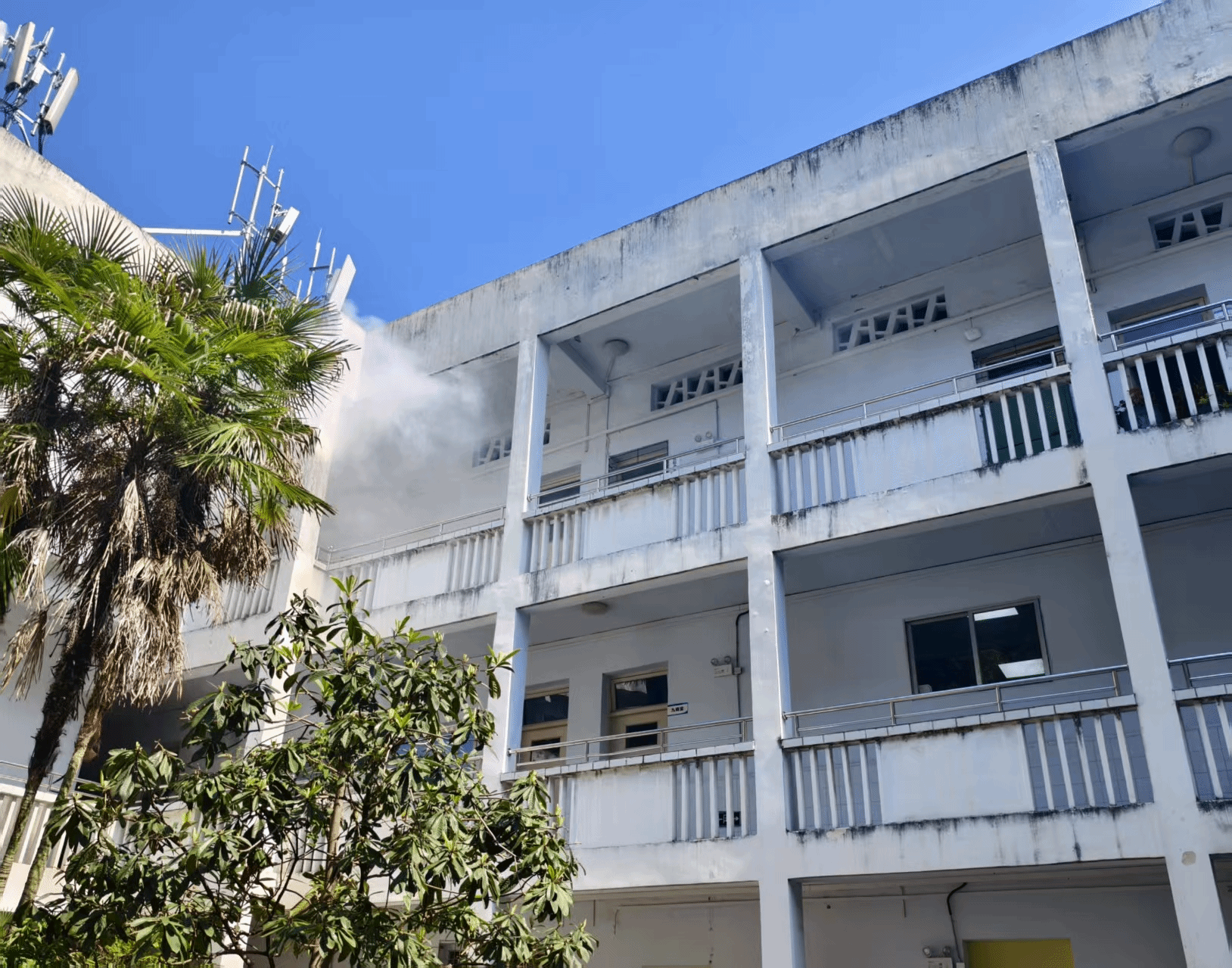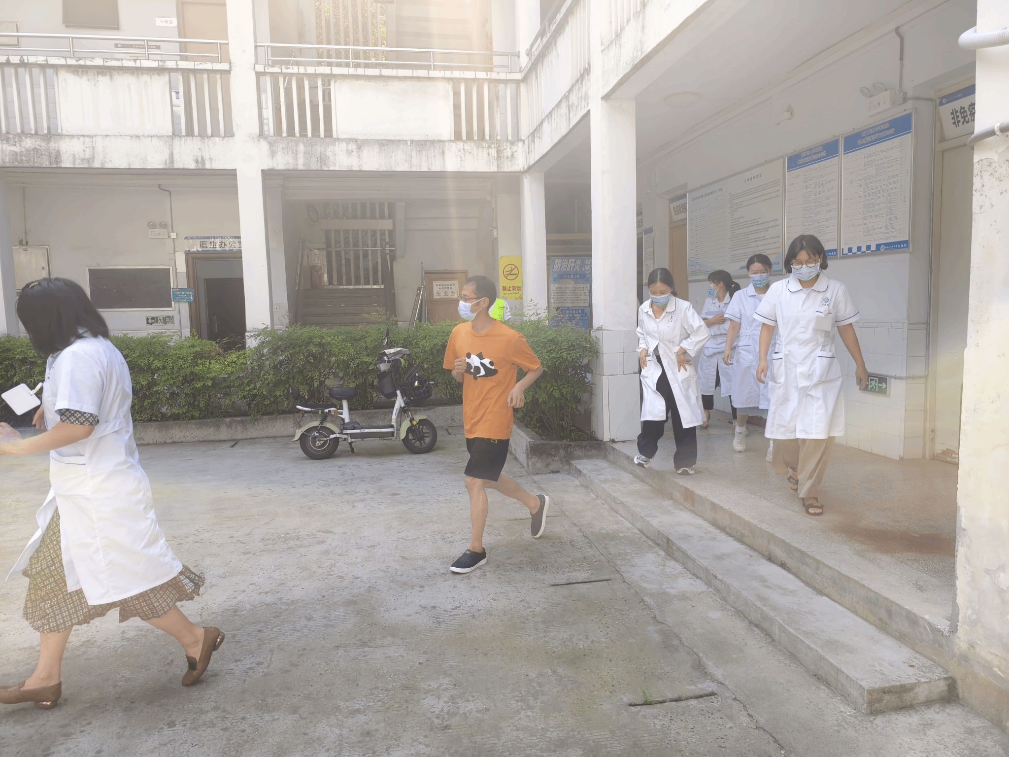 本次演练模拟校医院2楼住院部过道由于烟头不慎引发火灾,浓烟弥漫整个楼道并向四周快速扩散。楼内医护人员及时发现火情,立即拉响警报。所有医护人员按照疏散引导员指示,使用湿毛巾遮掩口鼻迅速从安全通道疏散撤离,沿指定逃生路线有序撤离至安全场地。同时,工作人员及时赶往起火地点进行应急处置。1名医护人员因逃生过程中不慎摔倒受伤在2楼楼梯口处,消防救援志愿者在灭火和搜救过程中将这名医护人员成功救出。经过安全场地负责人清点人数后,确认全体人员安全撤离,至此本次消防演练结束。