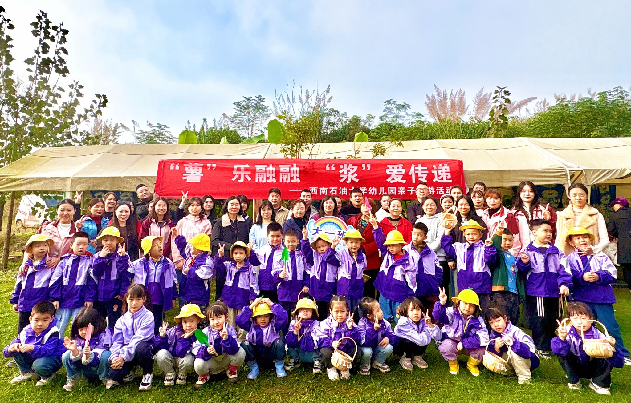 为丰富幼儿生活体验,增进亲子情感,促进家园共育,10月28日,校区幼儿园依托本地自然资源,分年级组成功开展了形式多样的亲子秋游活动。