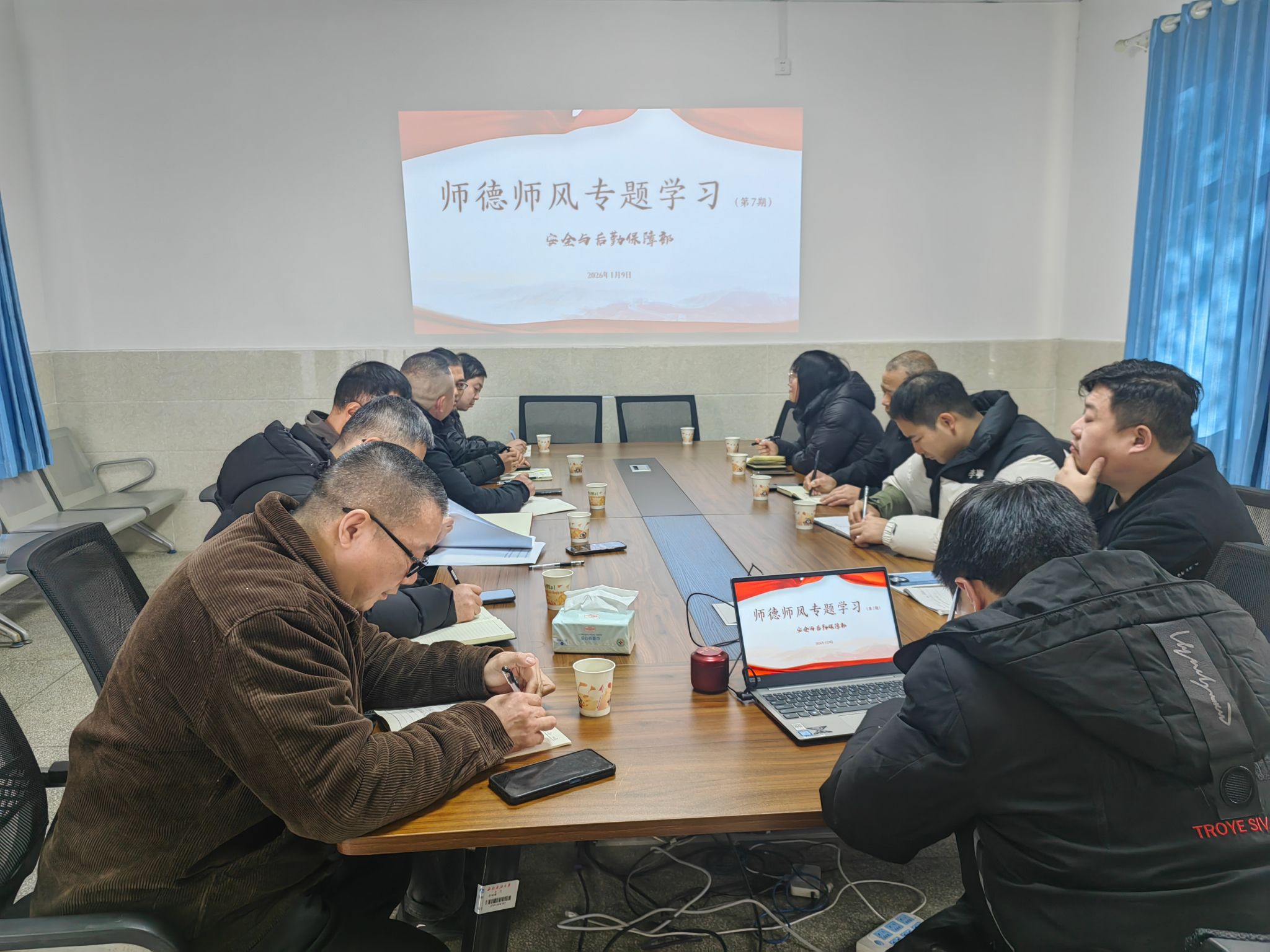 为深入贯彻落实2026年全国教育工作会议精神,切实加强师德师风建设,提升队伍政治素养与综合保障能力,1月9日,安全与后勤保障部组织召开了师德师风专题学习会。会议由副部长陈万林主持,综合科、消防科、治安保卫科、综治政保科、校医院职工参加学习。