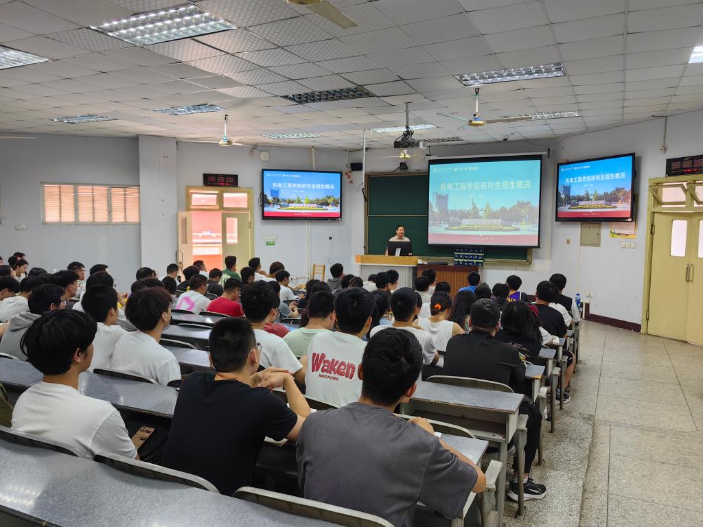 为充分调动学院2024届学生考研积极性,进一步营造备考的浓厚氛围,帮助更多同学科学备考、增强信心,5月18日下午,机电工程学院在南充校区第四教学楼4518教室召开2024届毕业生考研动员大会。机电工程学院副院长石明江、学生工作办公室(团委)副主任许露之和2020级学生参加此次动员大会。