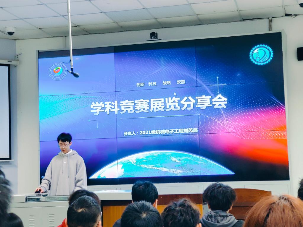 会上,曾荣获科创大赛全国一等奖的学生代表刘芮鑫、杨明举结合自身学习经历向与会学子分享了各类竞赛信息获取渠道、工具软件使用技巧以及参加赛事答辩的经验。