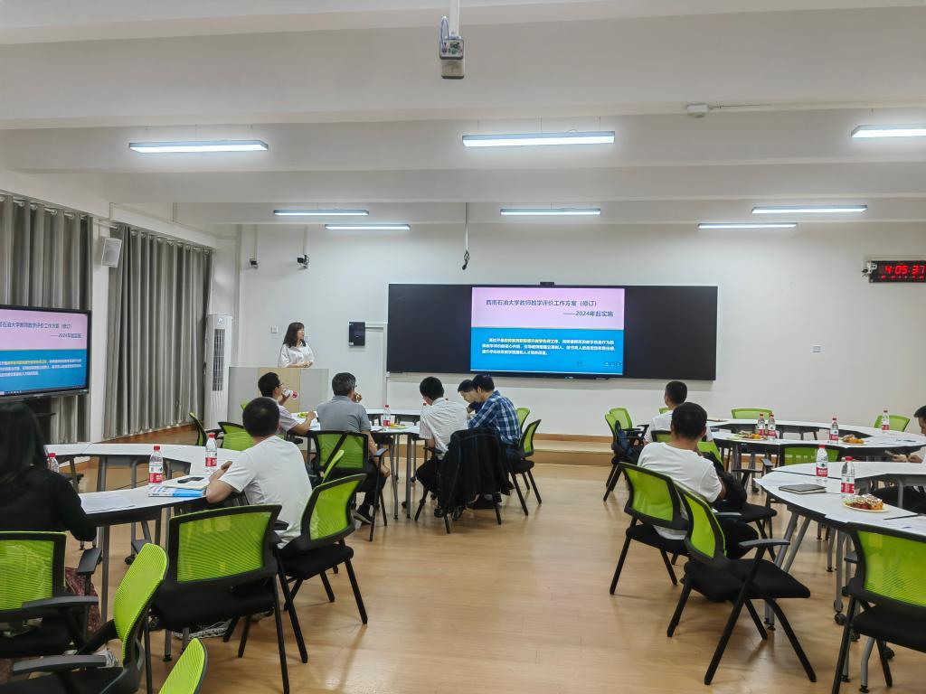 交流会上,沈坤蓉老师向学院老师介绍了学校新颁布的教师教学评价方案及实施方法,详细讲解了评价方案的具体评分办法,回答了老师的疑问,并针对老师如何做好职称晋升相关准备工作提出了建议。