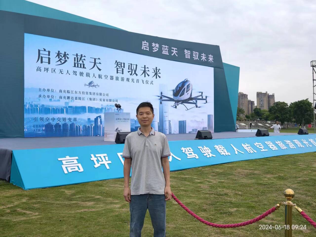 6月18日,南充市高坪区举办无人驾驶航空器旅游观光首飞仪式。此次活动由南充鹏达嘉陵江(集团)实业有限公司承办。机电工程学院科普实验室田军老师参加活动。