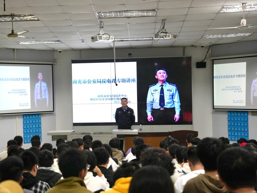 为切实增强学院学生的反诈骗意识,营造浓厚的反诈骗氛围,11月 8日下午,机电工程学院在第四教学楼4316教室举办了大学生防范电信网络诈骗主题宣传活动。活动邀请南充市公安局反诈中心、顺庆区公安分局将军路派出所所长苑石琦担任主讲嘉宾。