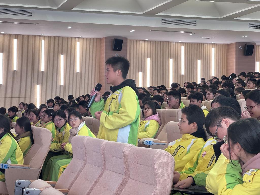 现场展示和表演结束后,科普团队举办了航模科普知识讲座。团队成员深入浅出地介绍了航空航天知识以及涉及的物理、化学、美术相关知识。并通过生动的案例与直观的演示,让现场的中学生了解了国家航空航天领域发展取得的伟大成就,增强了大家的爱国热情,激发了大家创新实践的兴趣。在互动环节中,现场中学生热情高涨,纷纷举手提问,积极参与讨论,现场气氛十分活跃。