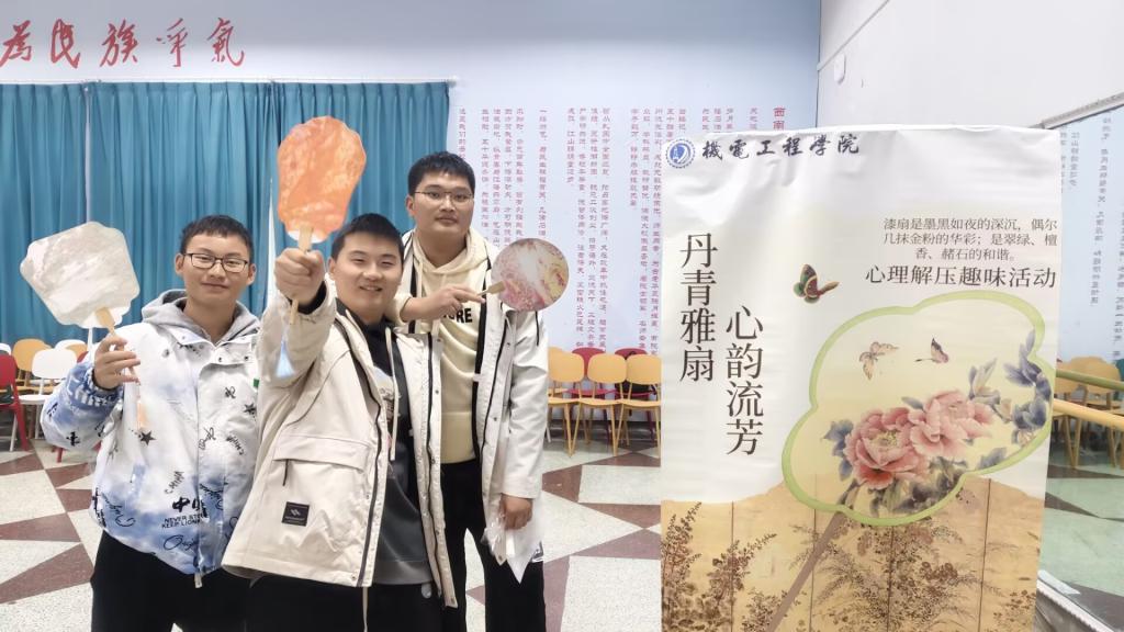 为丰富同学们的校园文化生活,传承和弘扬中华优秀传统文化,充分发挥文化育人作用,12月5日,机电工程学院成立“艺美机电”艺术工作坊,在学生活动中心举办了非遗文化进校园——“一扇一心 同绘新章”漆扇传统文化传承活动。