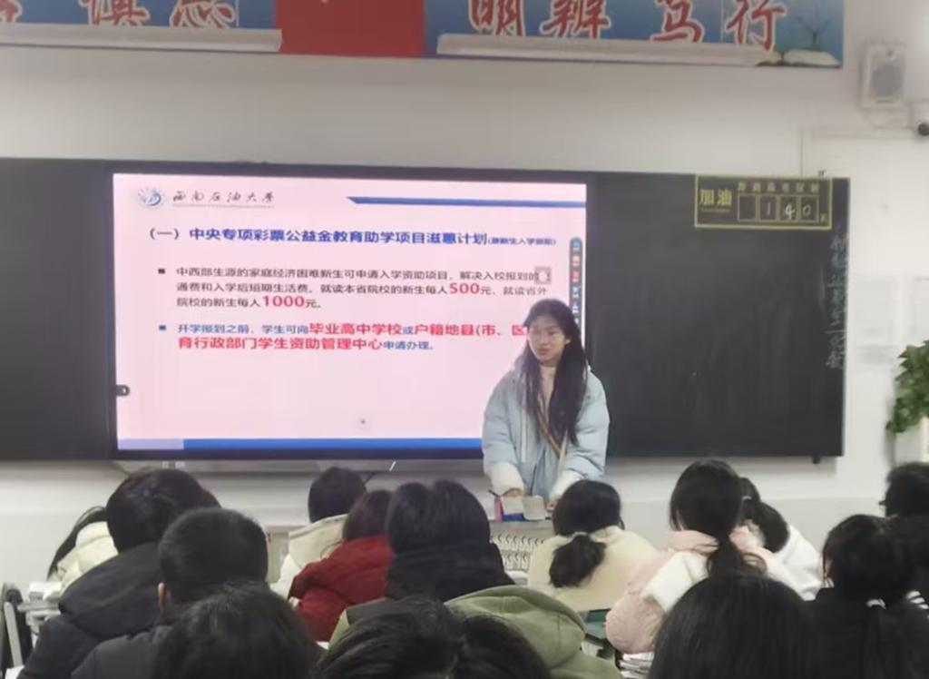 我院“助翼凌云队”“线代高分过”等实践队奔赴嘉陵一中、绵阳梓潼中学等母校开展政策宣讲活动,宣讲团成员化身政策宣讲大使,通过政策解读、案例分析、互动答疑等多种形式,详细介绍了我校的“奖、助、贷、勤、补、免”六位一体资助体系,让家庭经济困难学生对未来求学路树立信心。宣讲活动不仅为家庭经济困难学生点亮求学希望,更搭建起政策宣传的暖心桥梁,充分展现了机电学子知恩感恩、勇于担当的精神风貌。
