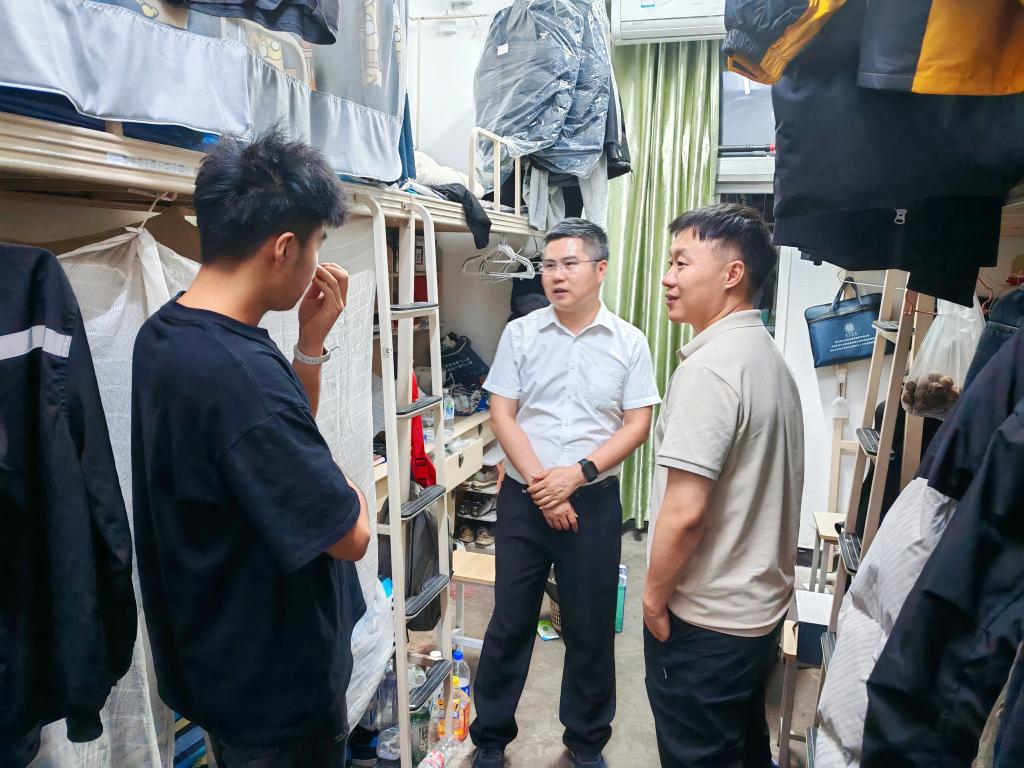 走访过程中,蔡灿一行深入每一间学生宿舍,对床铺、书桌、窗台等各个区域进行全面细致地查看,严格对照宿舍安全管理标准,不放过任何一处角落。检查过程中,蔡灿与同学们亲切交谈,详细了解学生学习进度、未来规划、生活状态以及遇到的困难,对同学们的困惑给予耐心解答,对大家取得的进步表示肯定和鼓励。