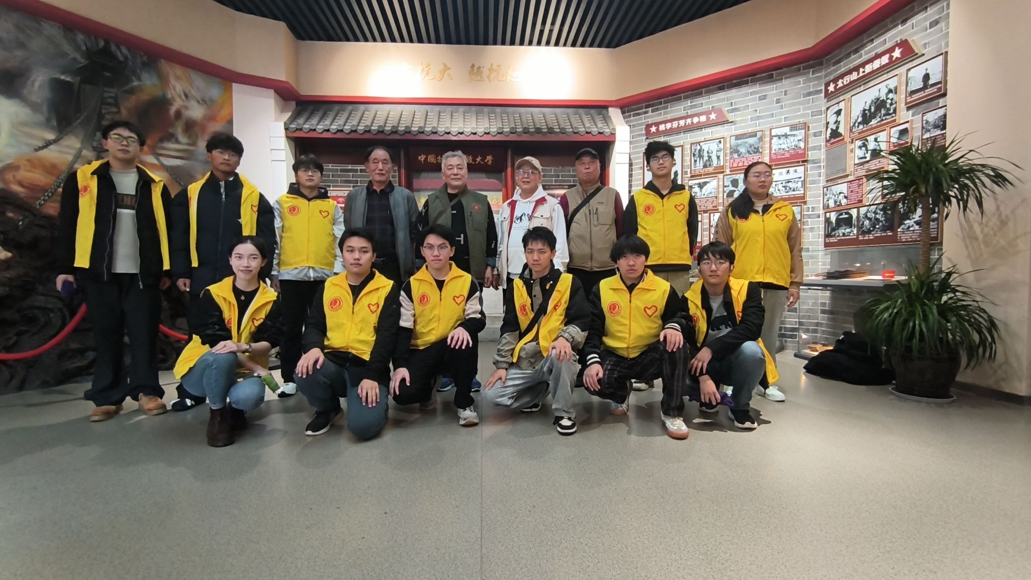 学生志愿者与老兵合影