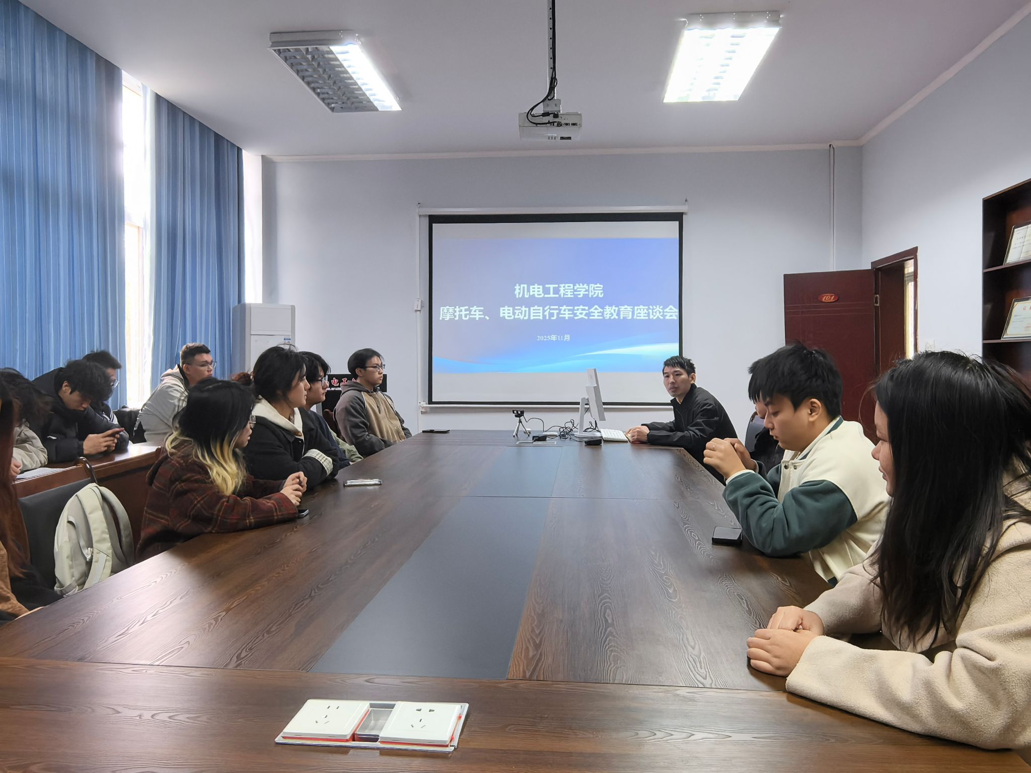 为进一步增强学生的交通安全意识,规范校园内摩托车、电动自行车的使用管理,预防和减少交通安全事故发生,切实保障学生人身安全,11月17日,机电工程学院在完井楼101会议室组织召开了摩托车、电动自行车校园安全教育座谈会。