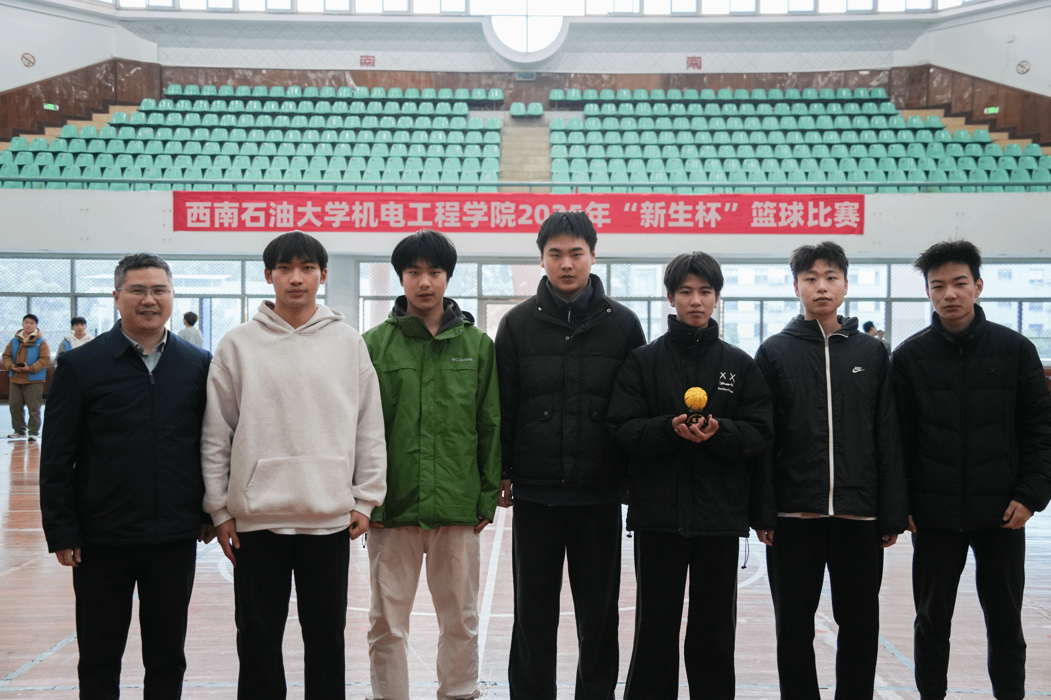 12月14日,机电工程学院“迎新杯”篮球赛颁奖典礼圆满举行。经过数周的激烈角逐,赛事在欢呼声中落下帷幕,学院副院长蔡灿、辅导员王晓龙出席典礼并为获奖队伍颁奖。