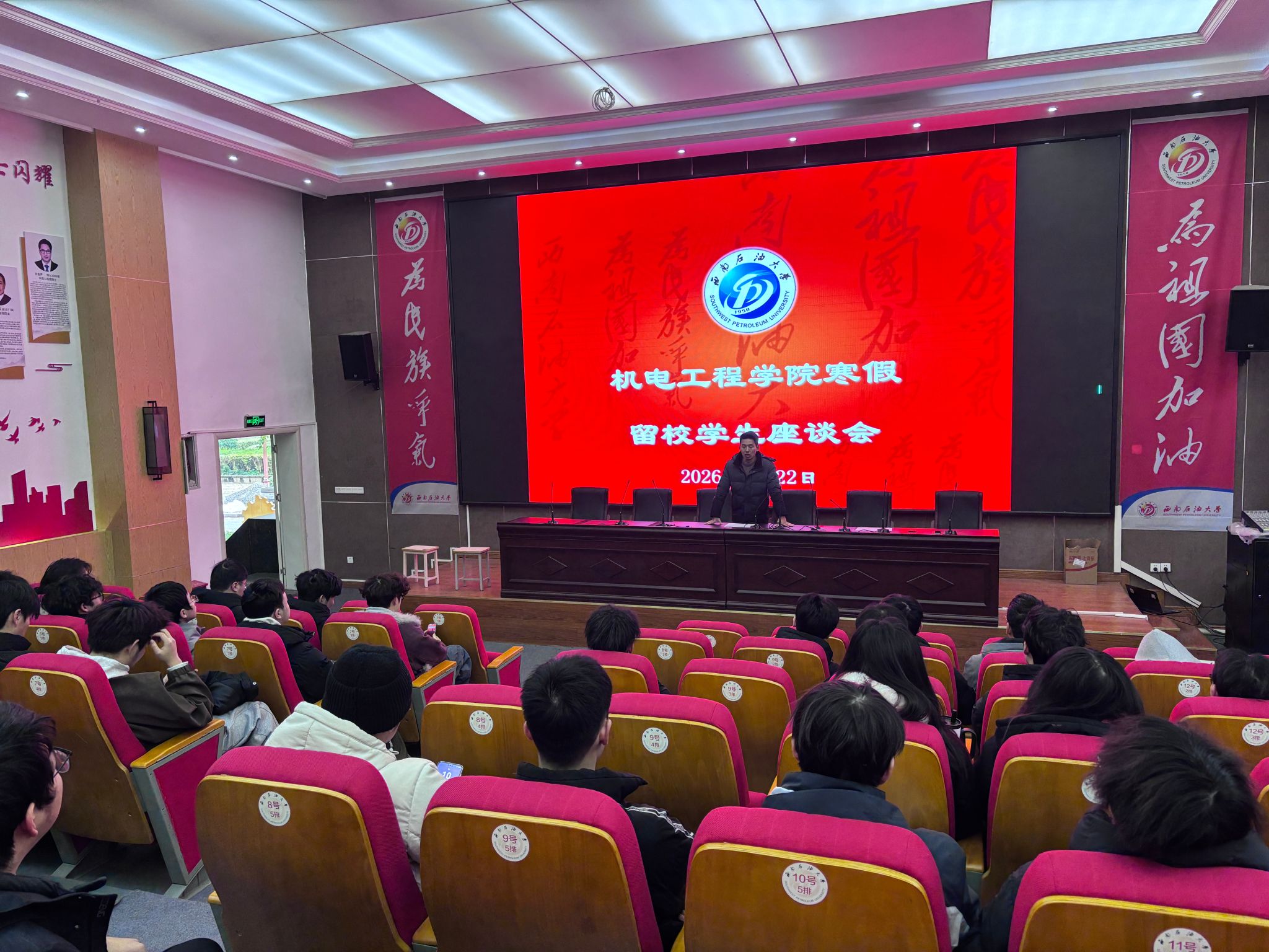 为进一步加强机电工程学院寒假期间留校学生的安全管理工作,筑牢安全防线,提升学生的安全意识与防范能力,切实保障学生的生命和财产安全,1月22日上午,机电工程学院举行寒假留校学生安全教育座谈会,并开展寝室走访慰问活动。