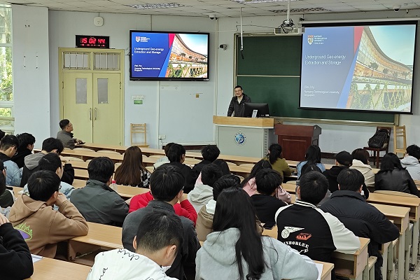 吴为教授以新加坡的地理环境和地下能源开采为背景,分别就地热能源的开采和地下能源储存库的建设两个方面作了讲解。如何有效进行地热能源的开采,吴为教授重点就开采中如何减小地震的发生与现场师生进行了探讨,分析了分别采用循环注水、酸液注水等方法的特点。如何建设地下能源储存库的建设,吴为教授分析了地下石油库和地下液化天然气储罐的建造过程中存在的问题,重点就如何通过数值模拟和机器学习的方法预测低温地下储罐所导致的岩石的变形作了介绍。