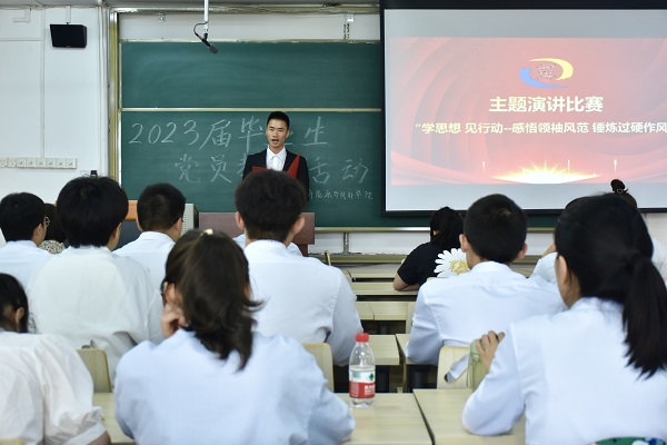 此次毕业生党员教育活动还开展了“学思想,见行动——感悟领袖风范,锤炼过硬作风”主题演讲比赛,各位参赛党员以真事述感受、用真情表决心,从不同角度畅谈自己的学习体会,表达了对先贤前辈的崇高敬意,展现了青年学子良好的精神风貌。