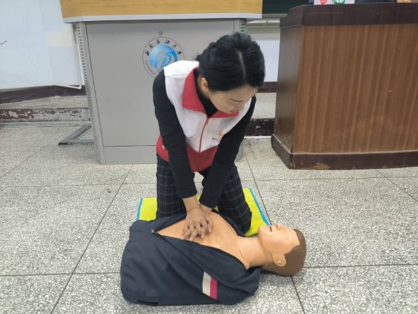 培训老师讲解了心肺复苏的理论知识和操作流程,并结合教具演示,介绍了急救方法。同时,培训老师讲解了创伤包扎、骨折固定、气道异物梗阻排除等急救知识,并现场作了示范讲解。同学们在培训老师的指导下,进行了实操练习,并在培训课程结束后参加了实操考核,进一步巩固了培训知识,提升了应急救护能力。(新能源与材料学院/毛玉林 李艾珂 陈瑞环)