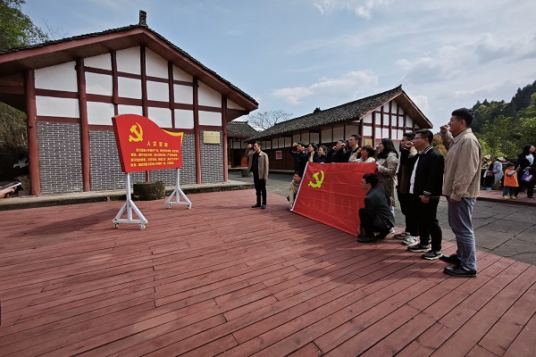 在西充家风馆,全体党员在曾明友的带领下郑重地举起右手,面对党旗庄严宣誓,重温入党誓词。在激昂的宣誓声中,每位党员更加深切地感受到了新时代党员的精神追求,进一步强化了对党忠诚、全心全意为人民服务的使命担当。