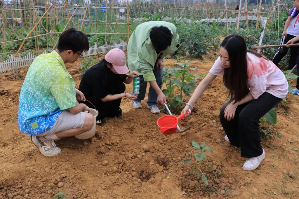 活动中,支部成员为学生们详细讲解了操作流程及安全注意事项,并从旁指导学生们安全有序地进行实践操作。他们纷纷表示,通过这次活动,不仅加深了对蔬菜种植知识的学习了解,也锻炼了自己的动手能力,感悟了团队协作与艰苦奋斗精神。