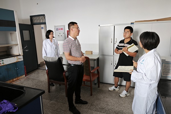 在检查过程中,周培山围绕实验室环境卫生、危化品存储与使用、实验室空间布局、仪器设备使用效率、用电用水基础安全等进行了深入细致地检查。针对检查所暴露出来的问题与实验室师生进行了交流,并提出了整改意见,对实验室的设备的存放、空间布局等工作进行了安排部署。