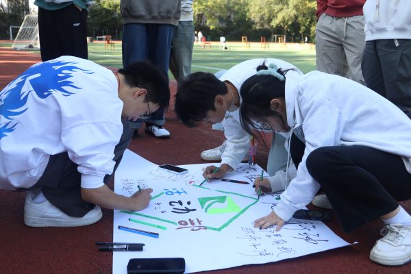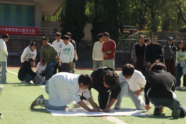 在足球场上,各部门成员设计属于自己部门的特色logo进行介绍,“讲”看法与理解。同学们以小组合作的形式进行“争分夺秒”“拔河比赛”等一系列游戏,充分展现出各部门间的凝聚力和向心力,“赛”出青年风采。每一次活动都是一次成长的机会,激励着学院团学组织成员不断突破自我,“践”青年担当。最后,学院学生工作办公室(团总支)副主任杜建钢老师总结提到,将让“讲、赛、践”成为本次系列活动的主线内容,助力学院学生成长成才。