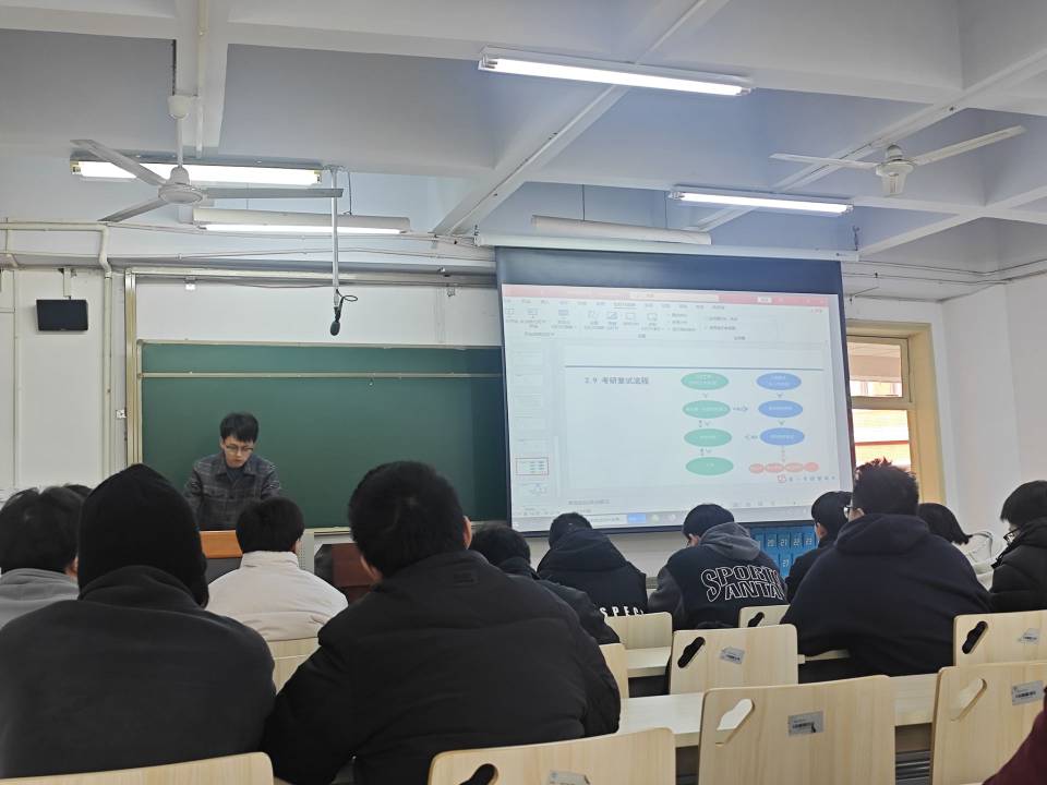 活动中,唐成玉向同学们介绍了考研复试安排及流程,详细解读了复试流程、复试资料收集、常见问题类型、面试常见的热点问题。针对调剂环节,他建议同学们要提前了解调剂政策和流程,积极收集目标院校的调剂信息,并根据自己的实际情况合理制定调剂策略。除此之外,他还鼓励同学们要认真准备,积极应对,做好心理调适,将压力转化为展现自我的动力。