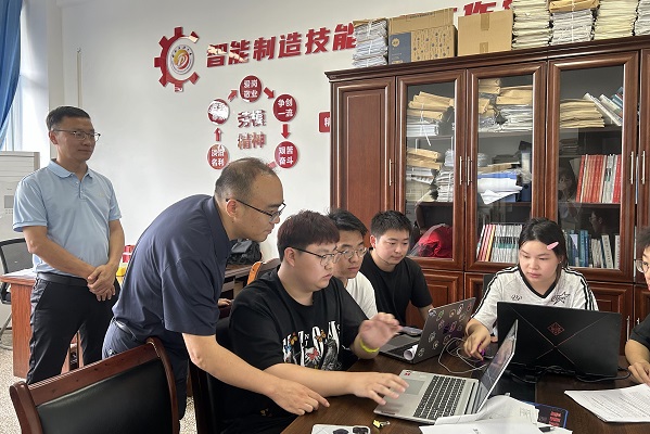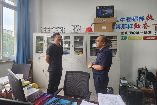 在教研室,李小刚与教师交流学科建设等工作,还为备赛学生提供专业指导。同时,调研组对实验室进行安全检查,强调安全重要性。