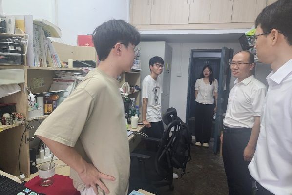 当天上午,武元鹏面向学生开展了考研动员宣讲会,他结合学院专业特色与行业发展趋势,鼓励同学们树立远大目标,积极备考。随后,调研组前往实验室进行安全检查,仔细查看了实验室的仪器设备运行情况、危险化学品管理以及消防设施配备等。安全检查结束后,调研组走进学生寝室,与同学们进行了亲切交流。