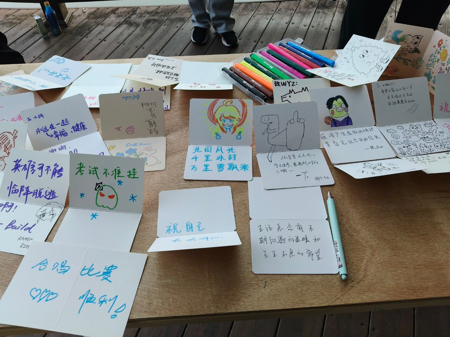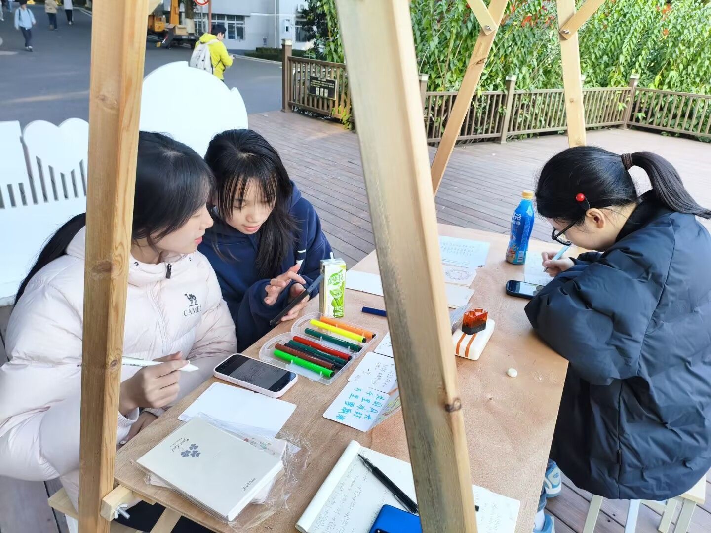 为丰富校园文化生活,搭建同学间情感沟通的桥梁,传递冬日里的温暖与关怀,11月28日,新能源与材料学院青年志愿者协会在龙井湖观景台举办了“暖冬传情”线下贺卡设计活动。