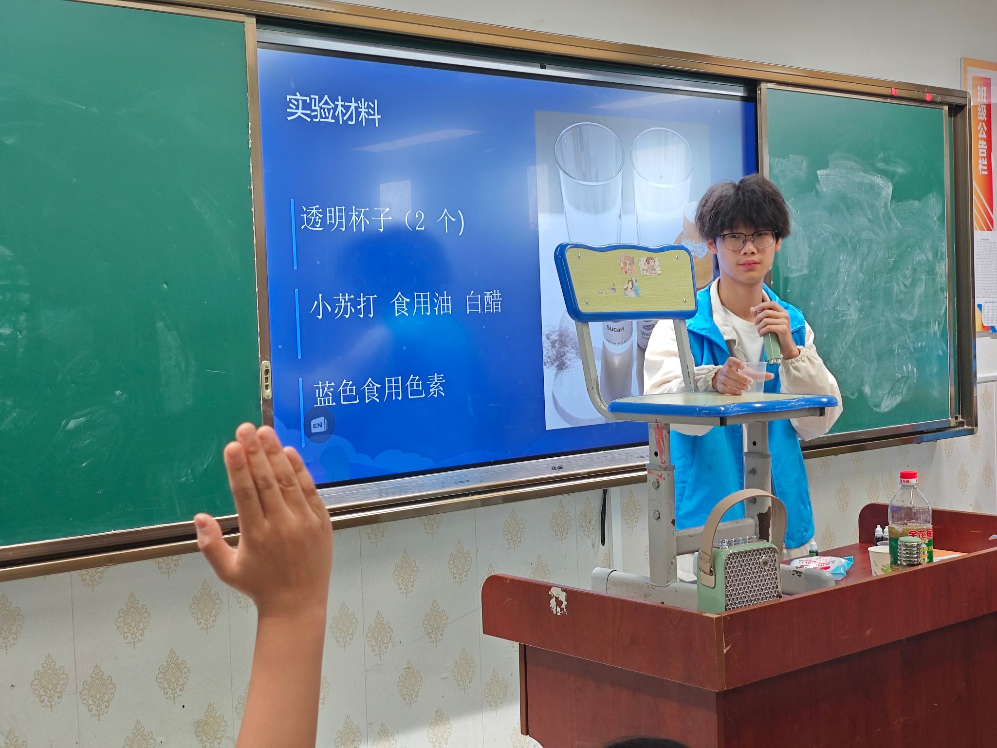学生志愿者开展科学实验场景