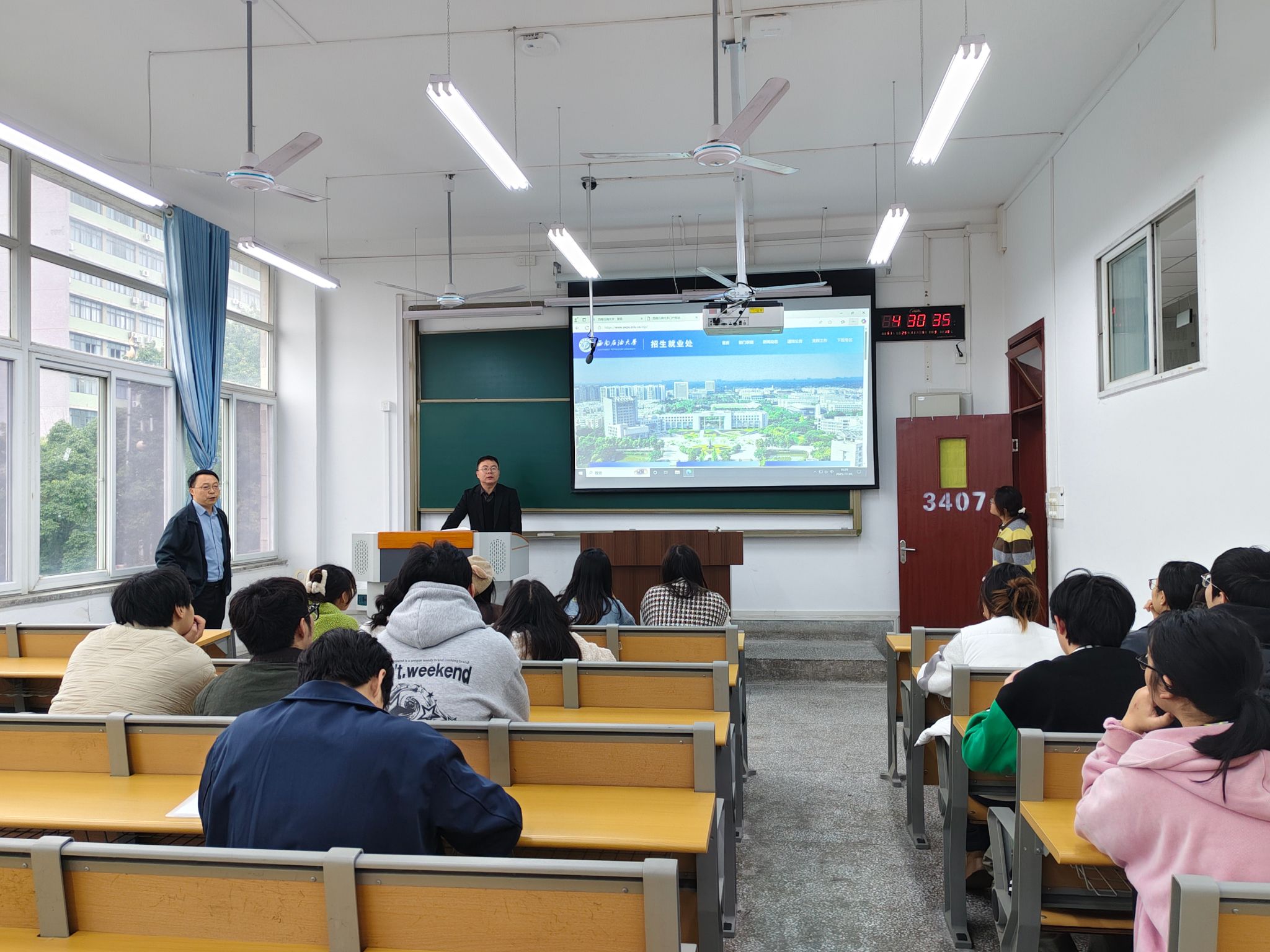 为切实解决建环专业大四学生在就业与毕业设计中的困惑,帮助学生明确发展方向,11月5日,土木工程与测绘学院岑康教授、建环教研室副主任宋斌老师先后在南充校区第三教学楼3219会议室和3407教室,与建环专业大四学生召开面对面交流会议,为学生送上“精准指导大礼包”。