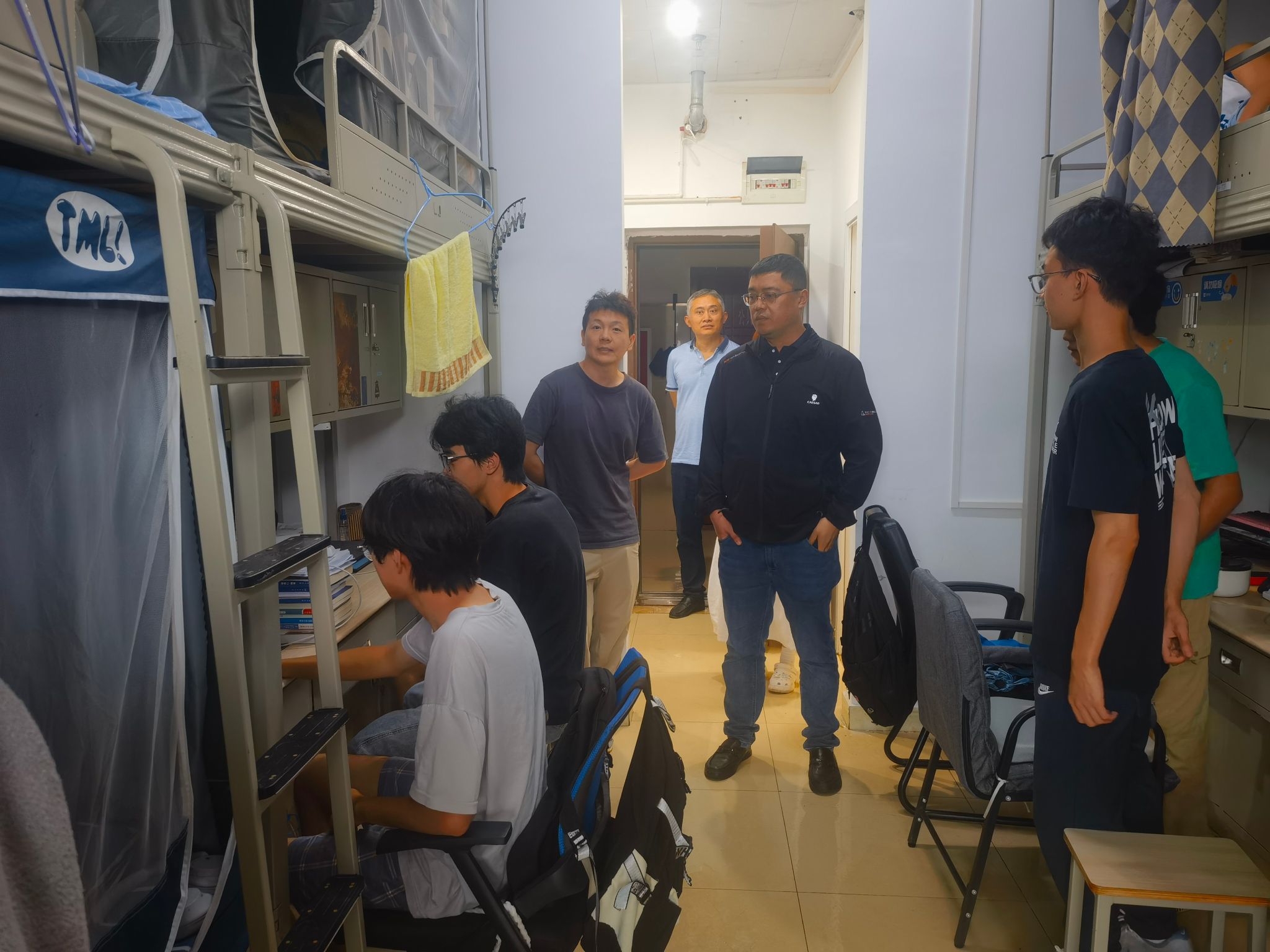 走访学生寝室过程中,老师们细致检查用电规范、消防设施及卫生环境,针对违规电器使用等隐患现场指出并督促整改。胥林强调,宿舍安全无小事,须时刻绷紧安全弦,自觉规范用电、保持整洁。走访中老师们关心新生课程适应与校园融入情况,解答其学业生活困惑;也关注高年级学生的专业学习与生活状态,倾听需求并给予针对性指导。