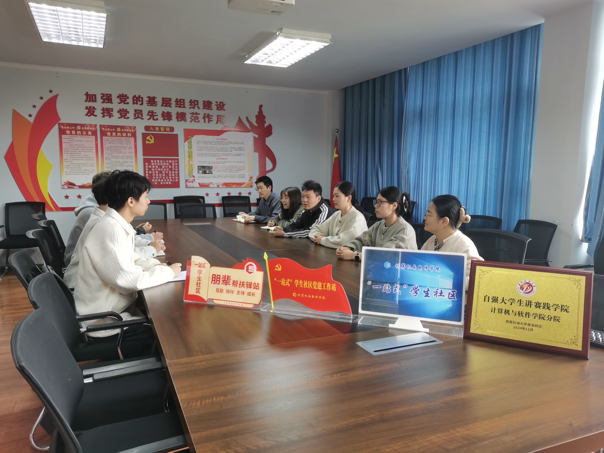 为扎实推进学院“讲赛践炼”育人工程及“一站式”学生社区建设,10月21日上午,计算机与软件学院于完井楼301会议室召开专题工作布置会。学院学生工作办公室(团总支)主任胡丹主持会议,全体辅导员及院团委学生副书记参会。