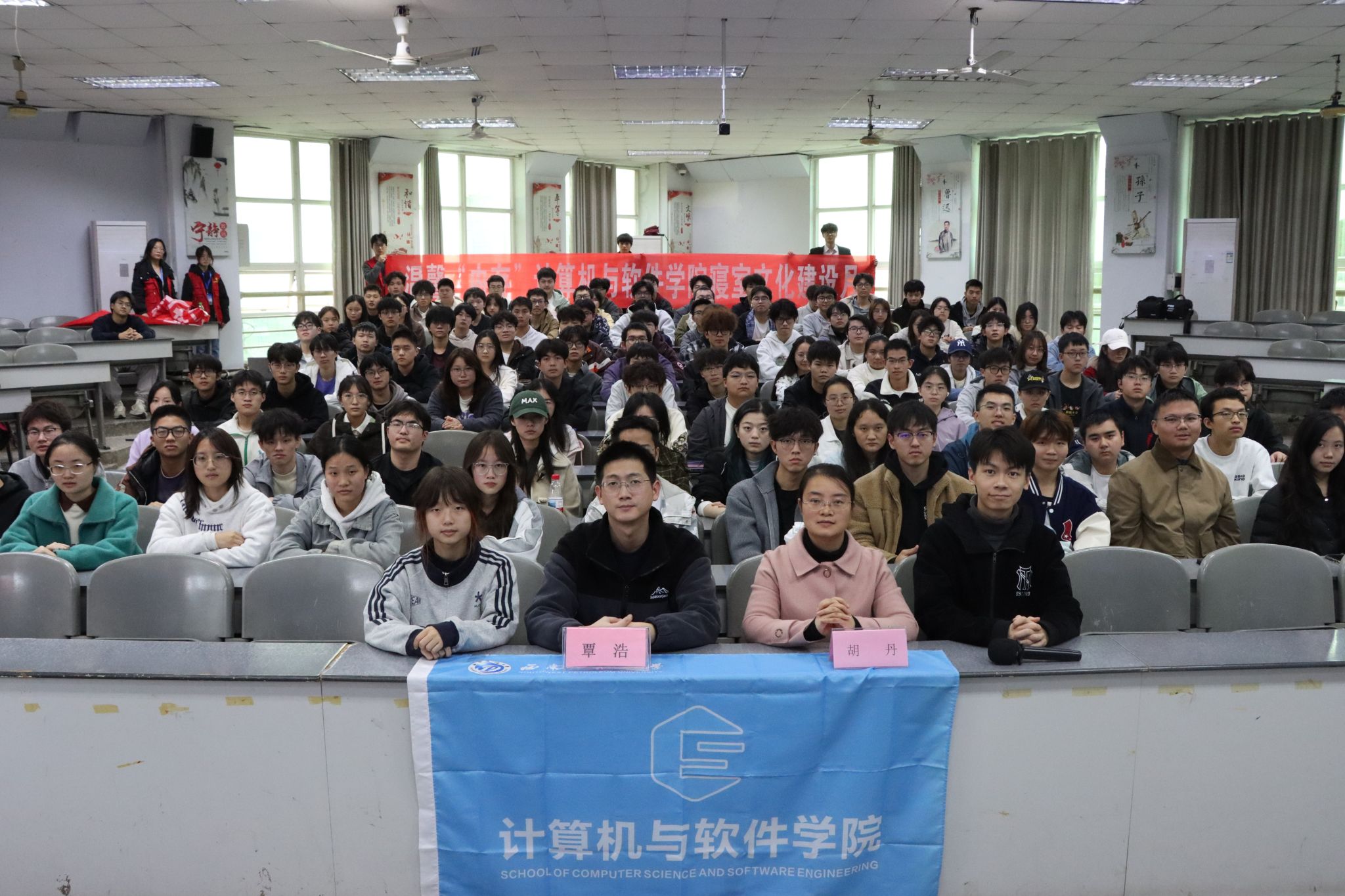 为加强学生寝室文明建设,营造良好的学习生活环境,11月13日,计算机与软件学院在第四教学楼4517教室举办2025年度“温馨‘内存’寝室文化建设月”启动仪式。学院学生工作办公室(团总支)主任胡丹,2022级辅导员覃浩,各年级生活委员及寝室长代表参加仪式。
