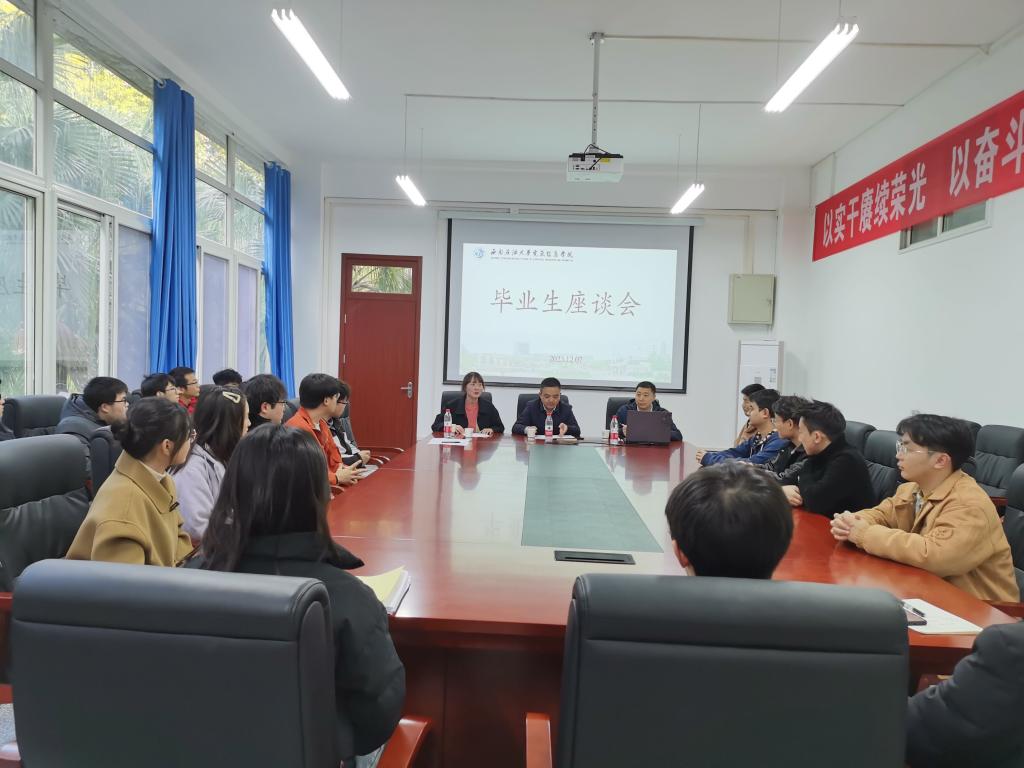 12月7日,电气信息学院在第三教学楼3219会议室召开2024届毕业生代表座谈会。电气信息学院党委副书记闰从山,团委副书记、学生工作办公室副主任刘强,毕业班辅导员和部分2024届毕业生代表参加座谈。座谈会由学院南充校区学生工作办公室(团总支)副主任刘新晖主持。