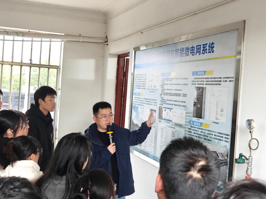 在参观过程中,电信院实验室袁杰敏老师为师生们详细介绍了实验室在新能源领域的研究成果和设备设施。围绕新能源发电站的光伏组件、逆变系统、并网系统及储能系统等核心设备设施,结合专业背景和实际案例,从理论基础到工程应用进行了详细介绍。他还针对光伏发电的关键技术难点、智能微电网的发展前景与应用场景等热点问题与师生们展开了互动交流。