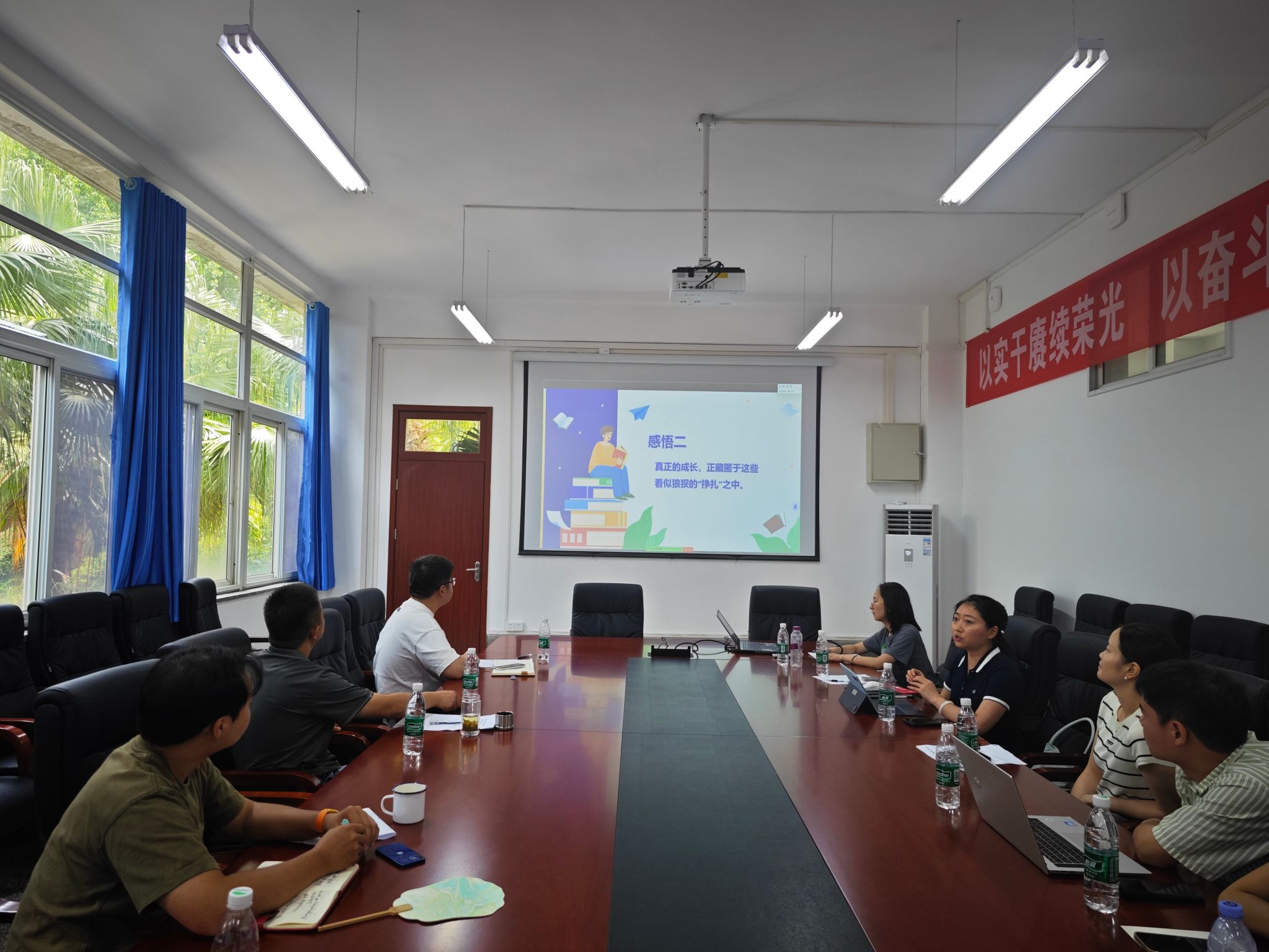 研讨会设置了暑期读书分享环节,有的分享了《被讨厌的勇气》,提出用自我启发方式疗愈学生精神创伤;有的结合《布鲁克林有棵树》,帮助学生树立积极心态;有的分享杨天真的《通透》,探讨如何运用简洁直接的沟通方式,提升工作效率与服务质量。现场气氛轻松热烈。