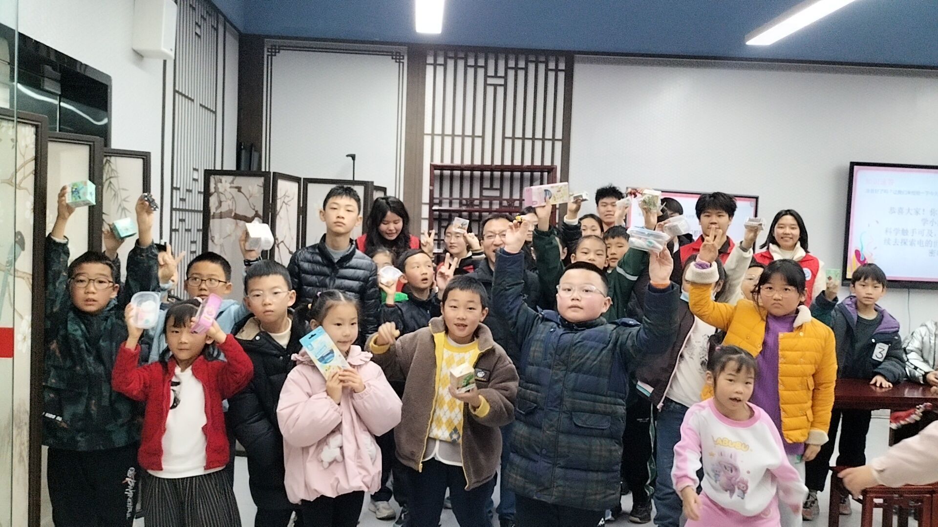 本次活动以“电能魔法与导电秘密”为主题,主讲人周阳同学以“什么是电”“电是怎么被发现的”两个问题切入,从电的起源讲起,循序渐进地为孩子们阐释电流的概念、电路的基本组成与连接方式,以及导体和绝缘体的区别。课堂现场气氛热烈,孩子们积极思考、踊跃参与,在实验互动环节亲手连接电池、导线与灯泡,点亮一盏盏小灯,沉浸式揭开电路运作的奥秘。
