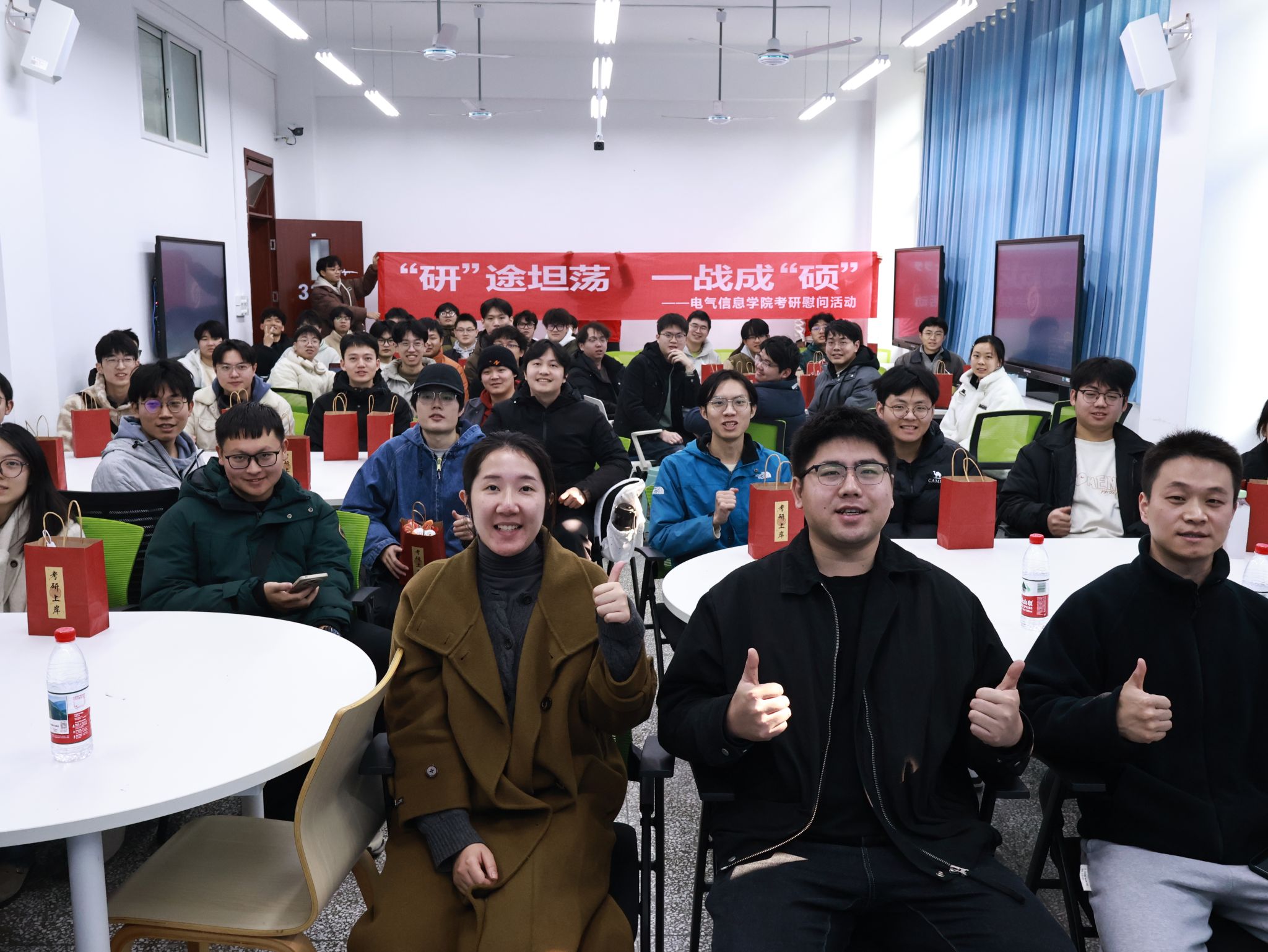 活动现场,老师们还为同学们送上了暖心大礼包,为他们的最后冲刺增添一份力量。2022级考研学子们纷纷表示,将把学院的关怀转化为冲刺的动力,以坚定的信心和饱满的热情投入到备考中,全力迎接考研挑战,用优异成绩书写青春华章。(电信院 丁孟扬 文/李维 图/李维 蒋游麟 王建均)
