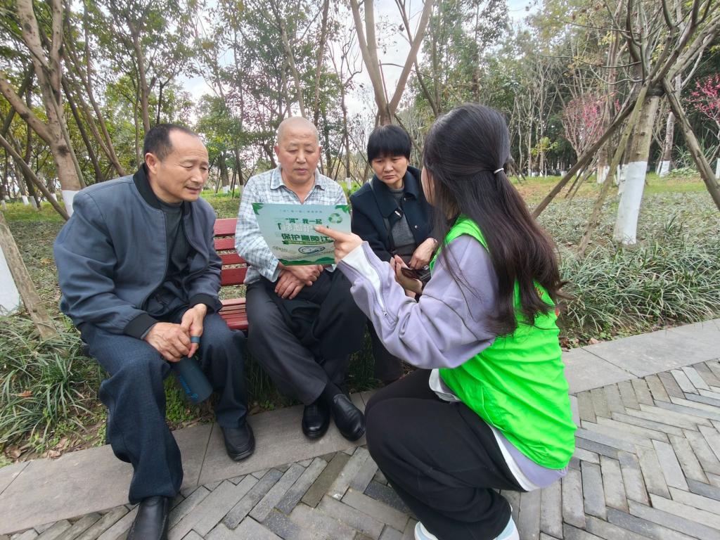 经济管理学院学生志愿者在南充市印象嘉陵湿地公园,向市民宣讲了双碳政策、垃圾分类以及土地荒漠化等知识,介绍了乱扔垃圾对环境的危害、破坏湿地对生态环境的不良影响,并呼吁广大市民积极加入到“低碳”行动中,争当绿色出行的实践者和宣传者。市民也积极地向志愿者了解了环境保护措施。