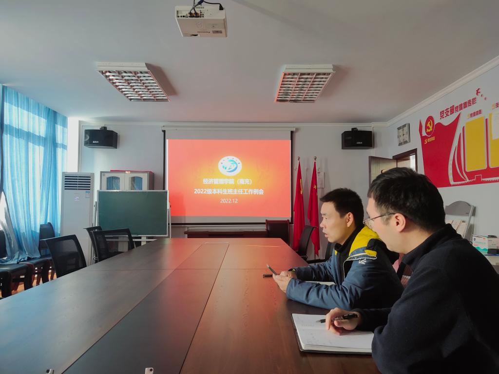 12月8日,经济管理学院在完井楼401通过线上线下相结合的方式举行2022级班主任工作第一次会议。经济管理学院辅导员杨智光、谢曜励和全体2022级班主任参加此次会议。