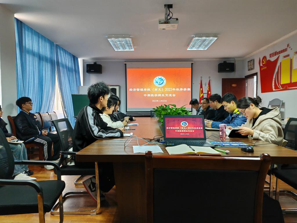 经济管理学院院长助理、学生工作办公室(团总支)主任和各教研室主任、各年级辅导员、教学干事和各专业年级学生代表参加座谈会。(经济管理学院/陈诺 舒莉)