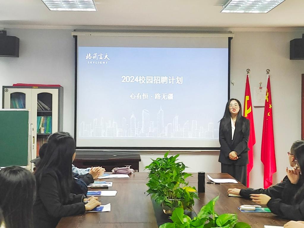 宣讲会上,企业代表分别从企业发展历程、未来发展趋势、经营业态、企业优势及特色等方面对企业进行了详细介绍,同时建议毕业生提高对当前形势的了解和把握程度,提前规划好自己的未来,明确职业目标。
