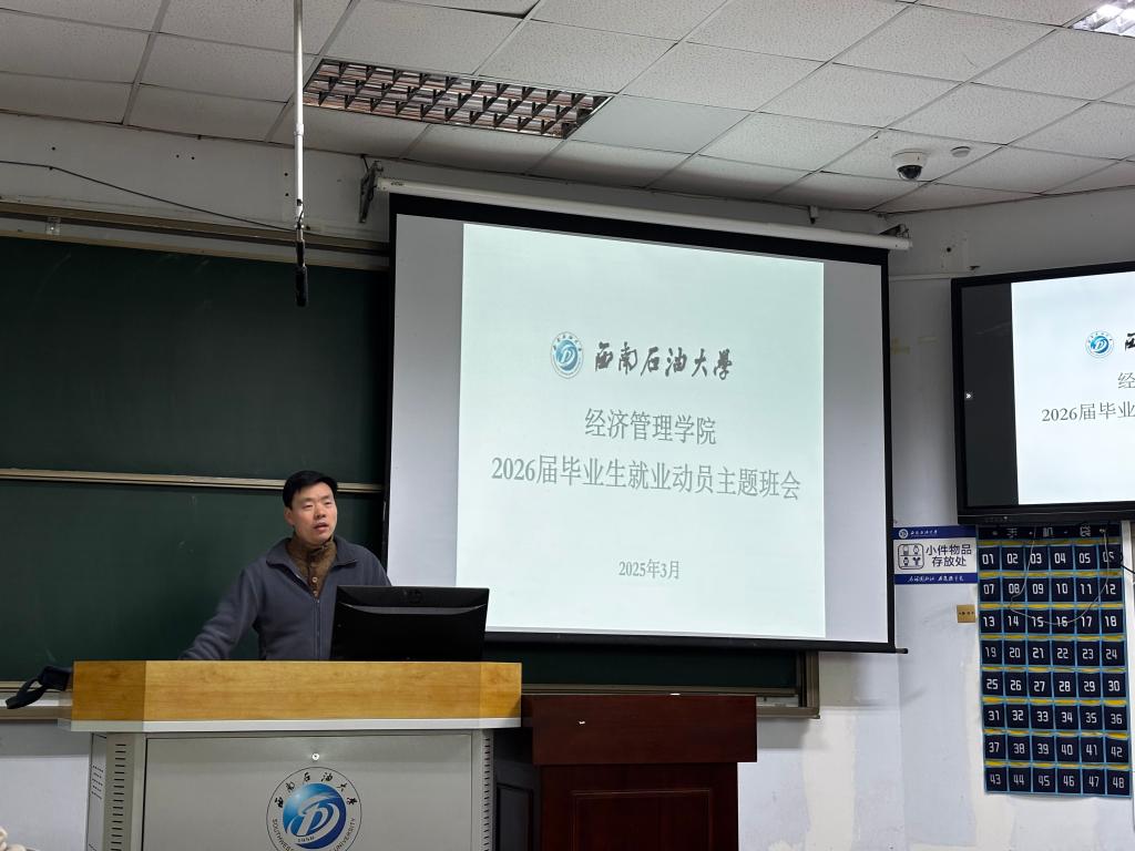 为助力毕业生明确就业方向,提升就业竞争力,3月19日上午,经管院在第四教学楼4416教室举办了2026届毕业生就业动员主题班会。学院学生工作办公室(团总支)主任杨智光出席并主讲,2026届全体毕业生参加本次班会。