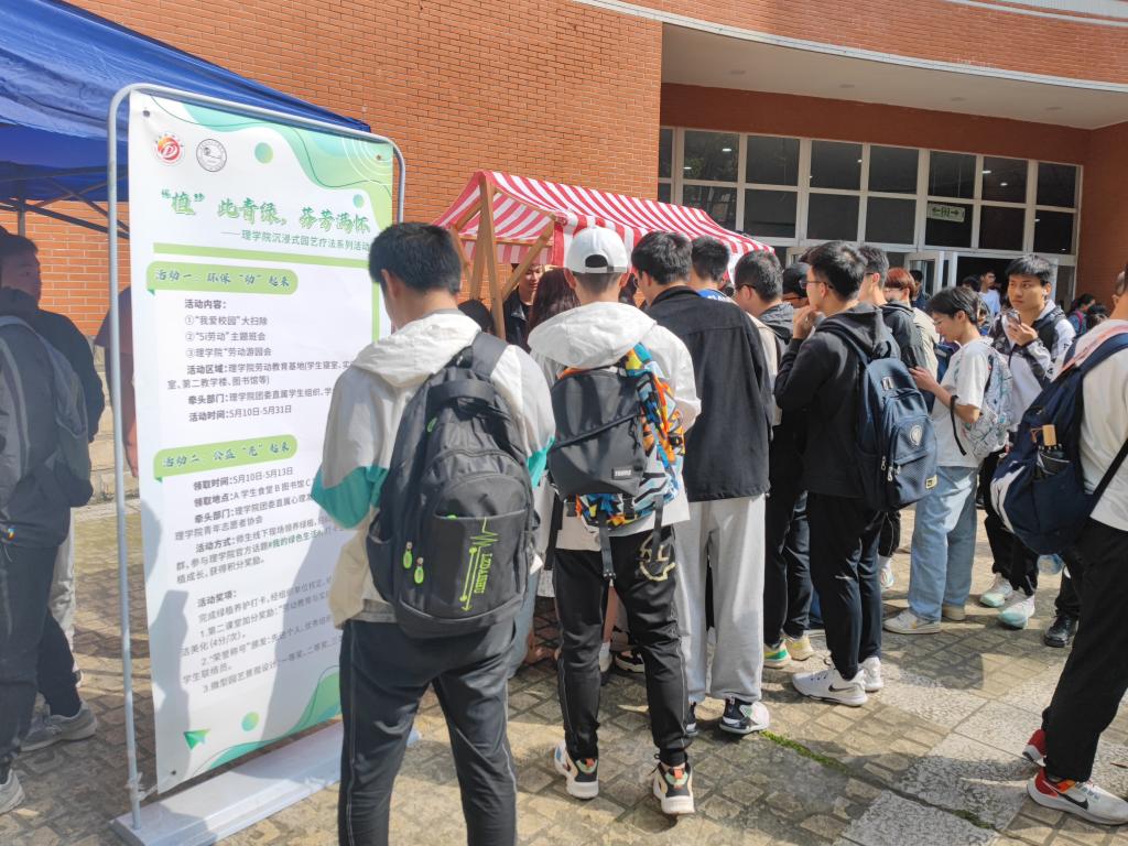 本次活动面向校区全体师生,采取线上报名、线下领养的方式开展。在图书馆和第四教学楼前的绿植领养现场,理学院准备了多肉植物、奶油生菜、奶油草莓、留香薄荷等20余种共计600余颗绿植。师生领养绿植后,按要求完成理学院在易班平台发起的“我的绿色生活”线上微话题,连续21天打卡,分享绿植养护过程。截至5月11日16:00,理学院累计发放番茄、辣椒、黄瓜、香菜、小葱和薄荷等植物300余颗,多肉植物200余株,线上推文转发量达200余次,领养师生300余人。