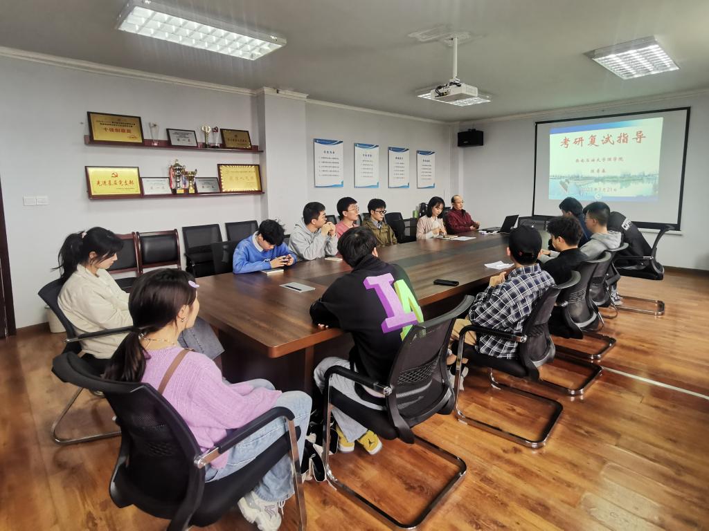 为帮助2023届参加全国硕士研究生招生考试复试学生做好“研”途路上的学业规划,缓解复试备考压力,3月21日下午,理学院在完井楼501会议室举办了2023考研复试指导交流会。理学院陈普春教授,学院学生工作办公室(团总支)副主任薛静参加会议。